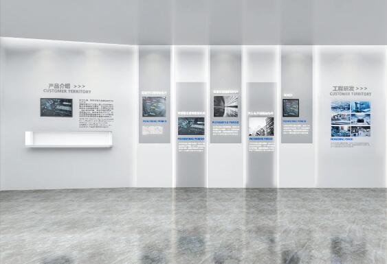 材质和光影是营造科技感的关键元素。在材质选择上,我们倾向于运用具有未来感和科技感的材料,如金属、玻璃、亚克力、LED屏幕等。金属材质的冷峻质感能够体现出科技的严谨;玻璃和亚克力的透明与通透感则给人一种轻盈、空灵的感觉,仿佛科技与现实之间只隔着一层薄薄的屏障;LED屏幕则可以实时展示科技信息、动态影像,为展厅增添一份科技活力。